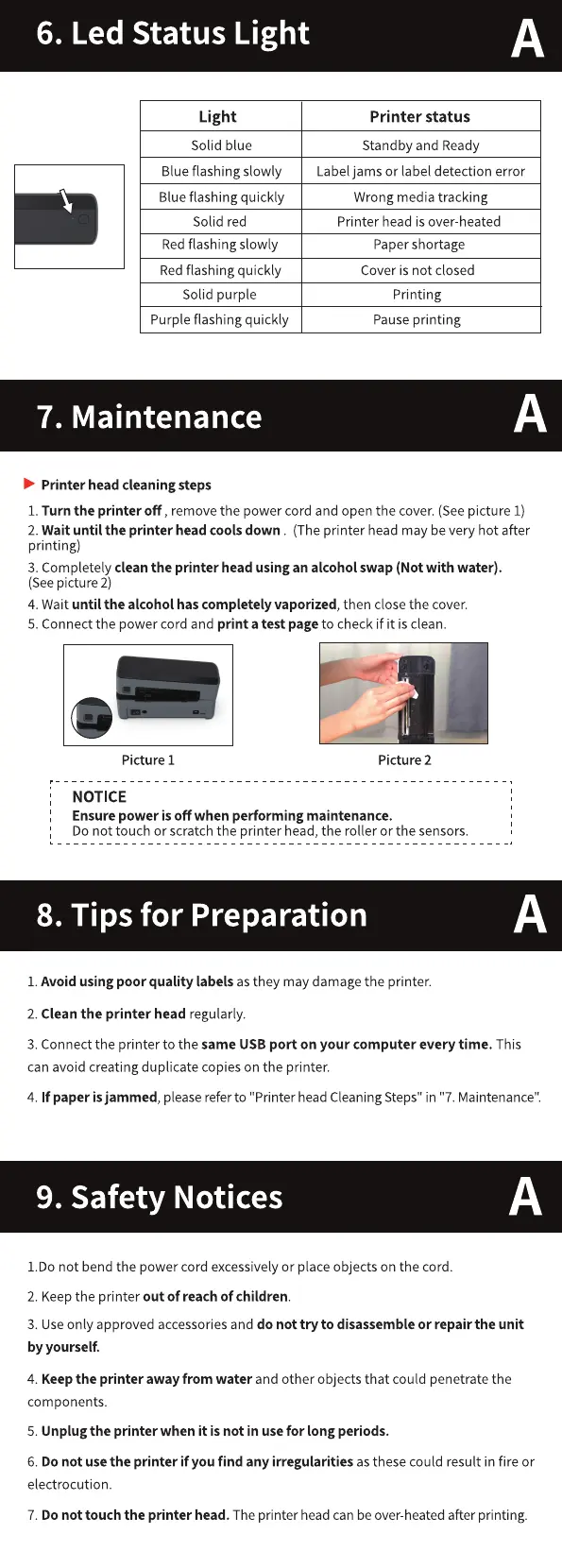 7. Do not touch the printer head. Theprinter headcanbeover-heatedafterprinting.