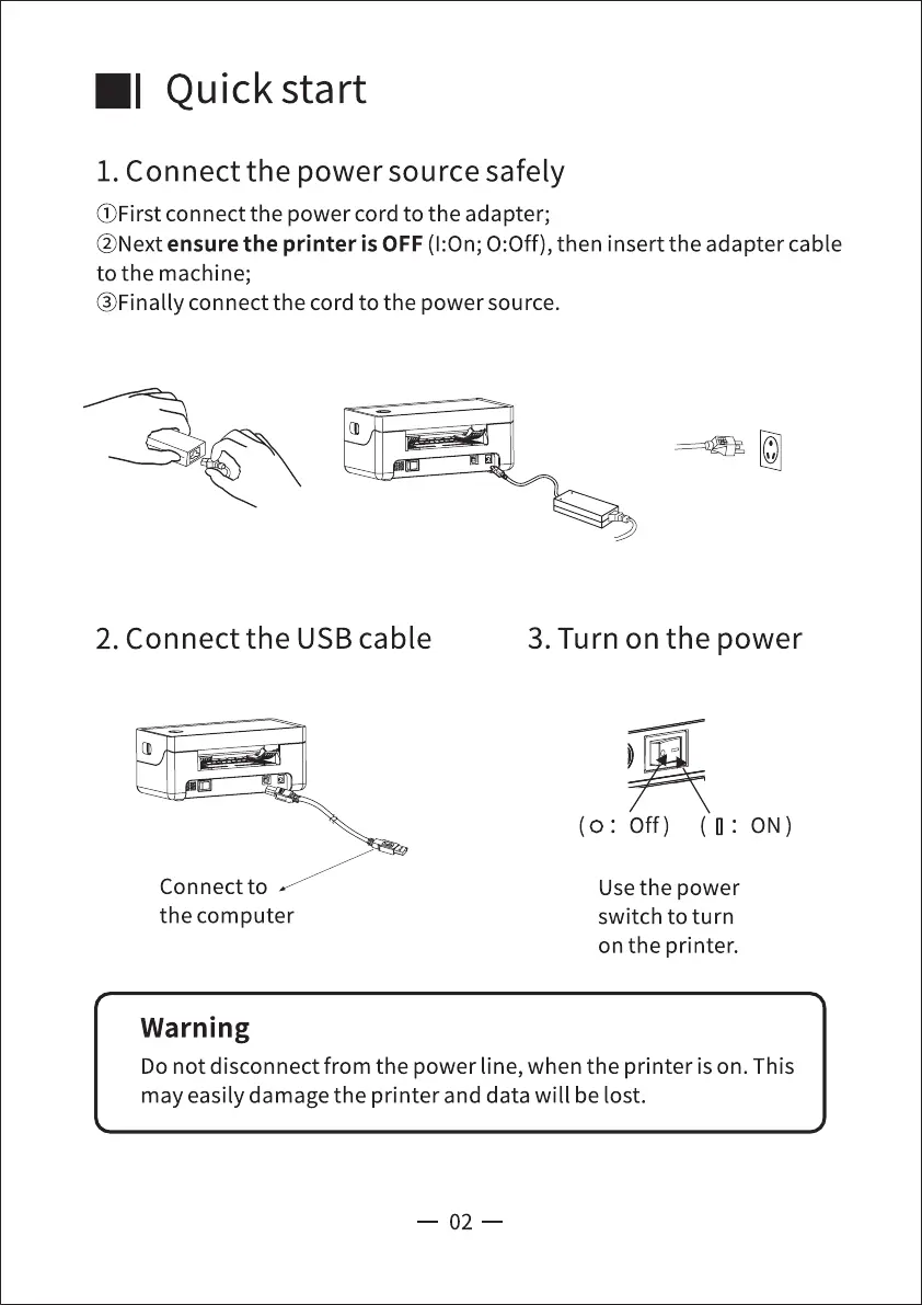 @Next ensure the printer is OFF (1:0n; 0:0ff), then insert the adapter cable