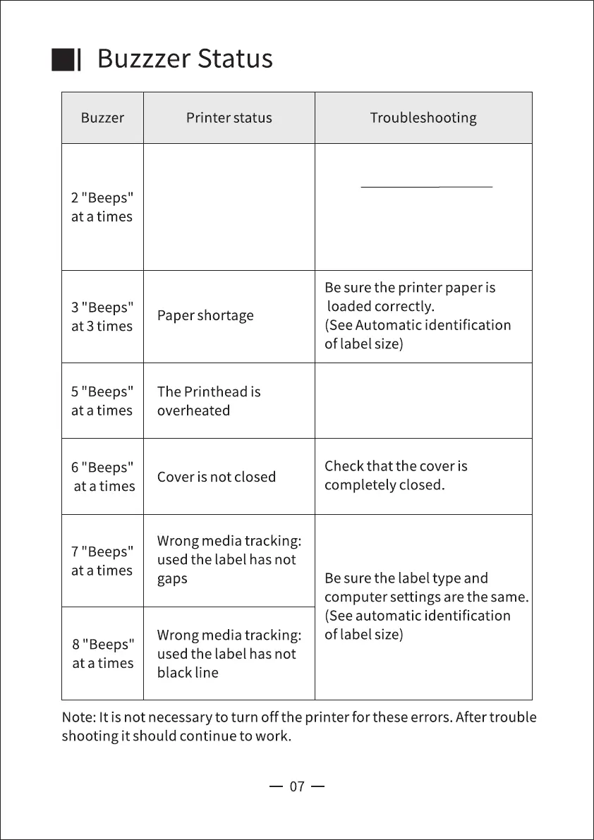Note: It is not necessary to turn off the printer for these errors. After trouble