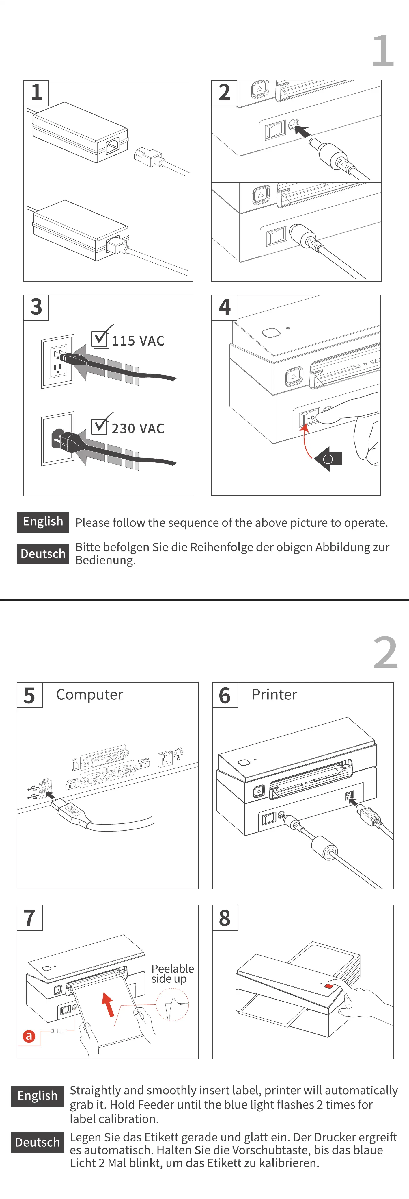 Licht 2 Mal blinkt, um das Etikett zu kalibrieren.