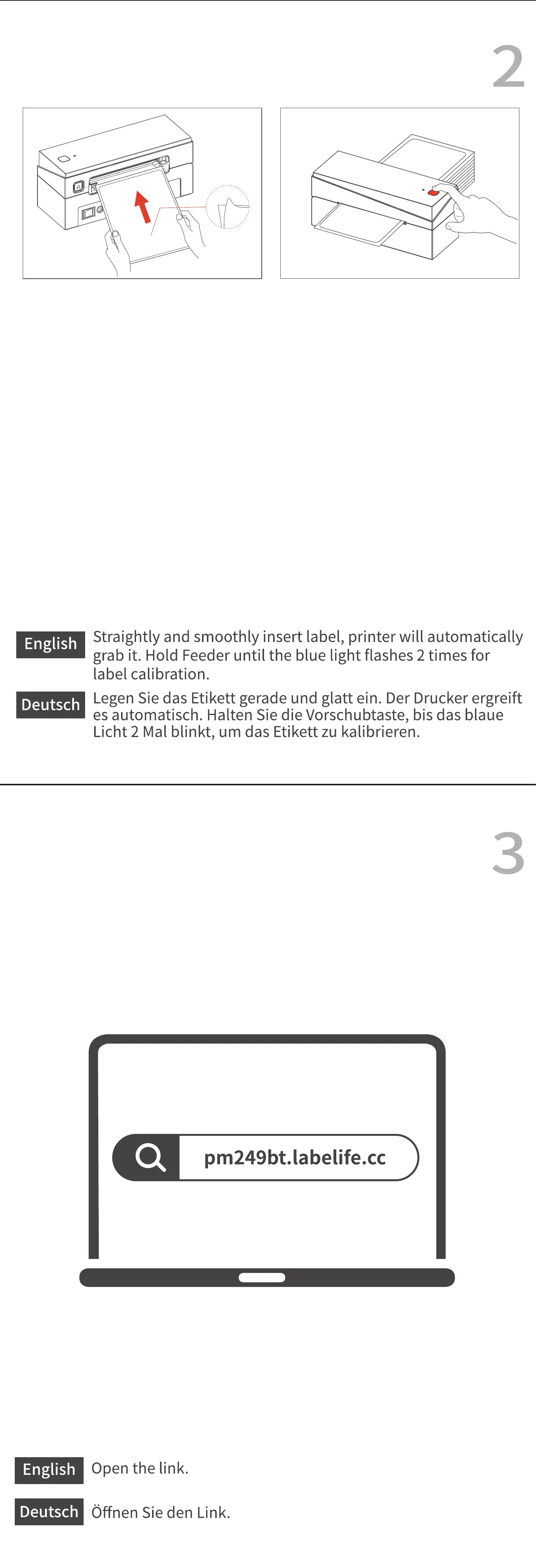 Licht 2 Mal blinkt, um das Etikett zu kalibrieren.