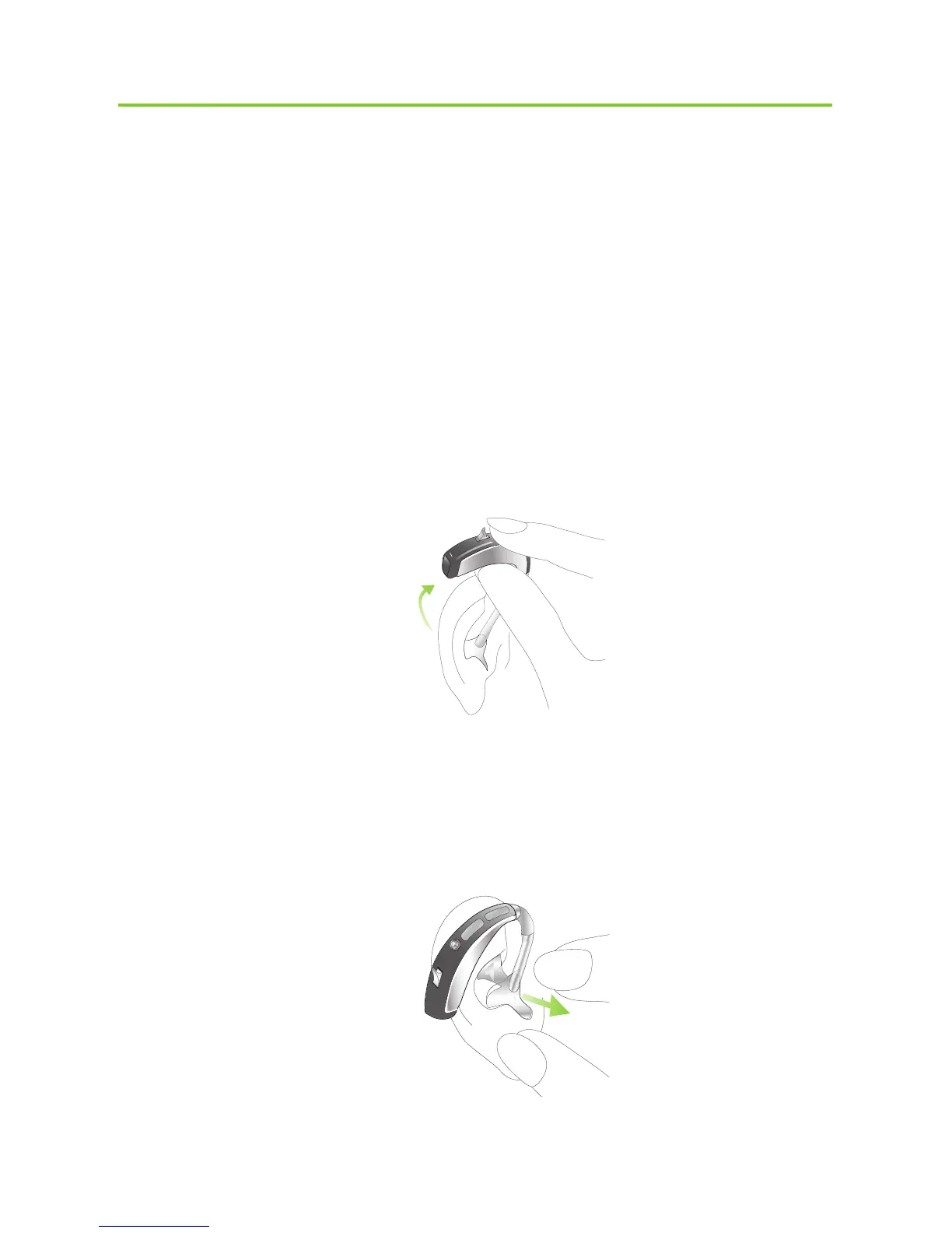 Take the hearing aid behind your ear (do not touch the