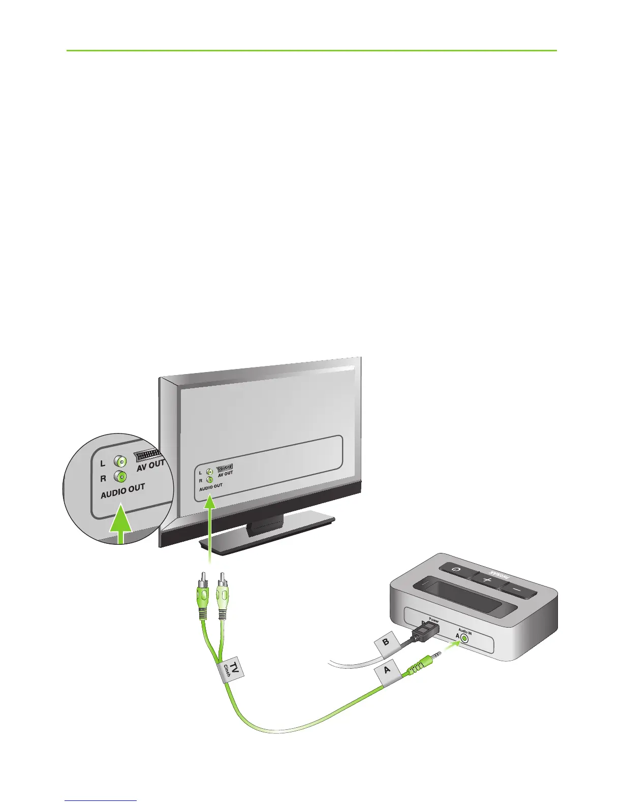 (“Audio IN”) of the TVLink basestation. Connect the