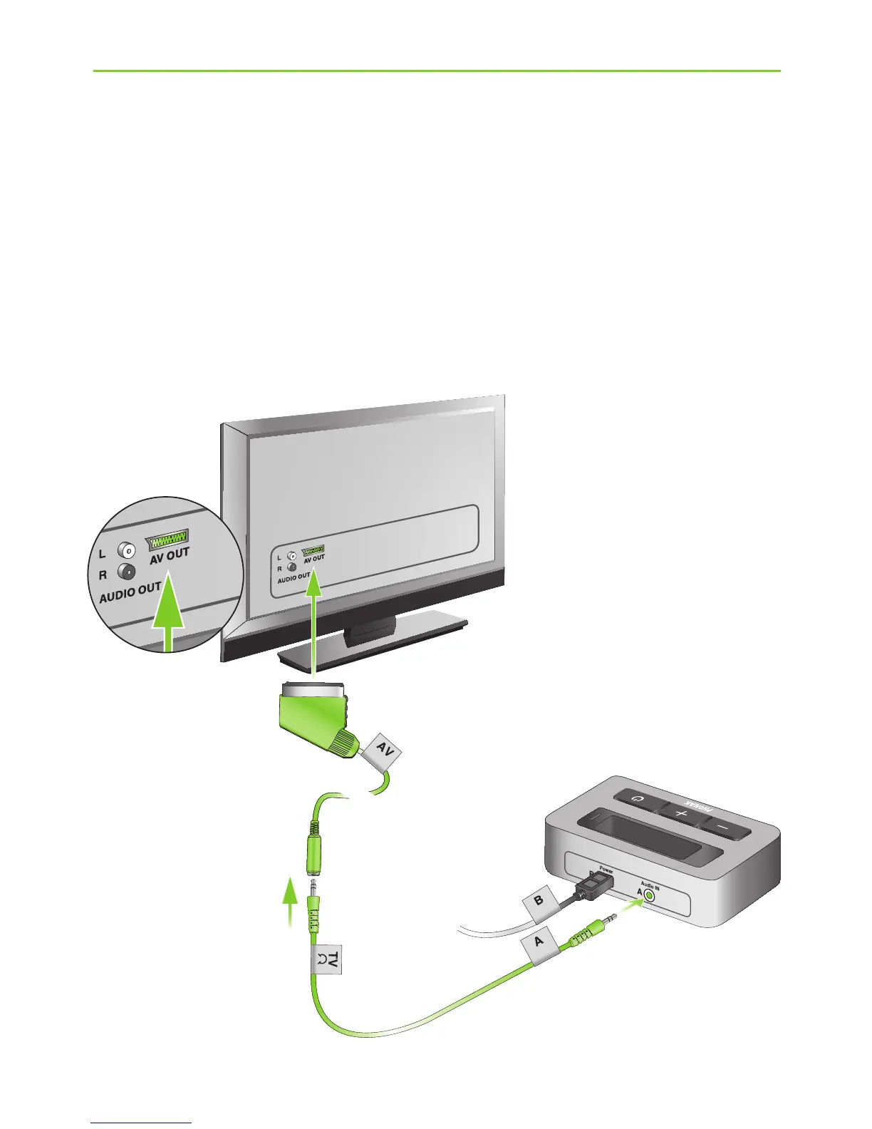 J Plug one end of the audio cable (k) into the TVLink