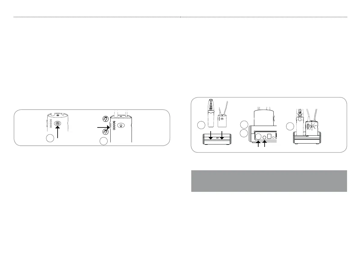 1. Place the receiver and transmitter in charger.