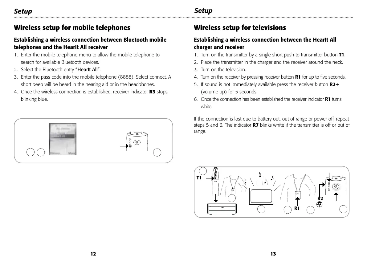 5. If sound is not immediately available press the receiver button R2+