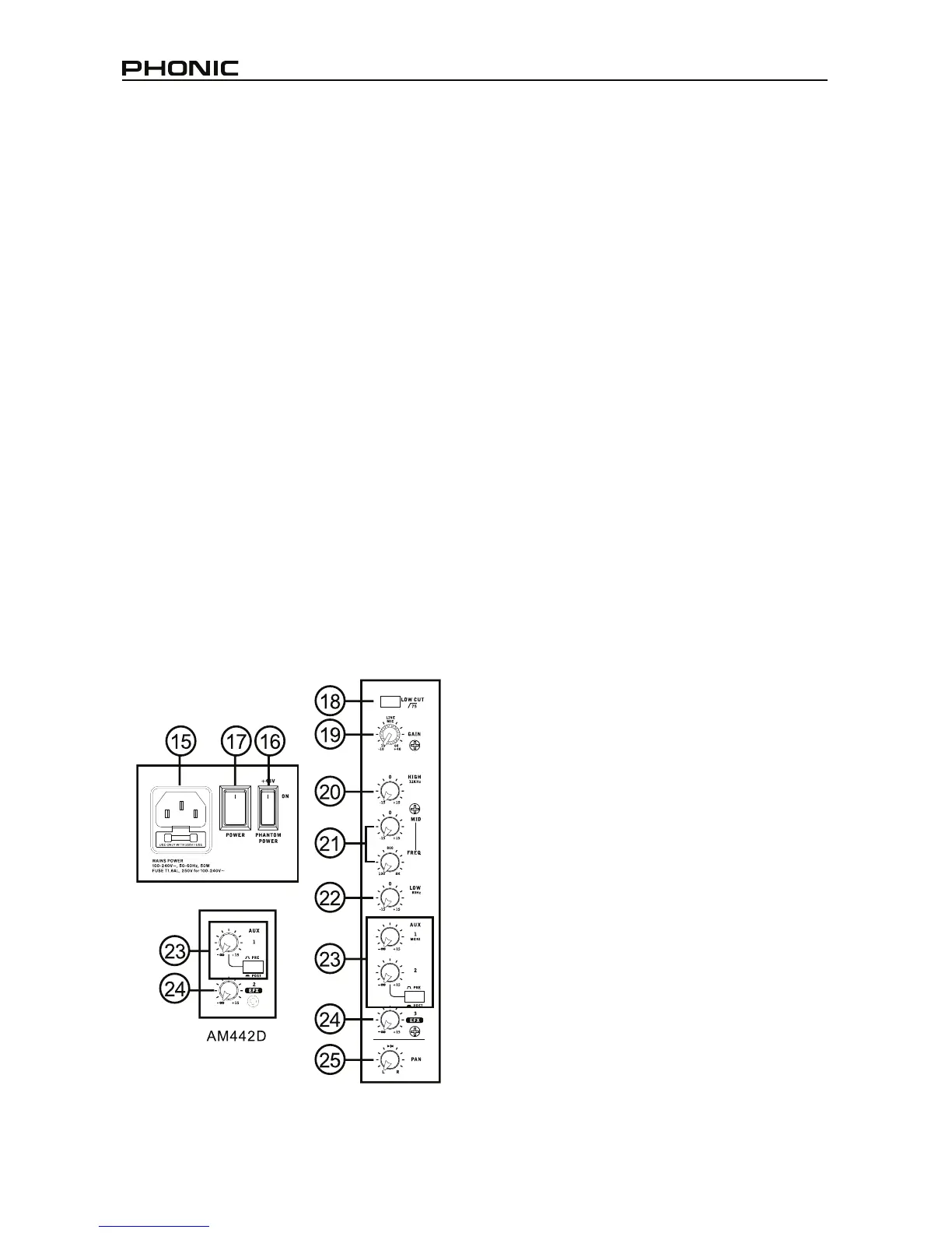 Mic channels on both the AM 442D and AM 642D.