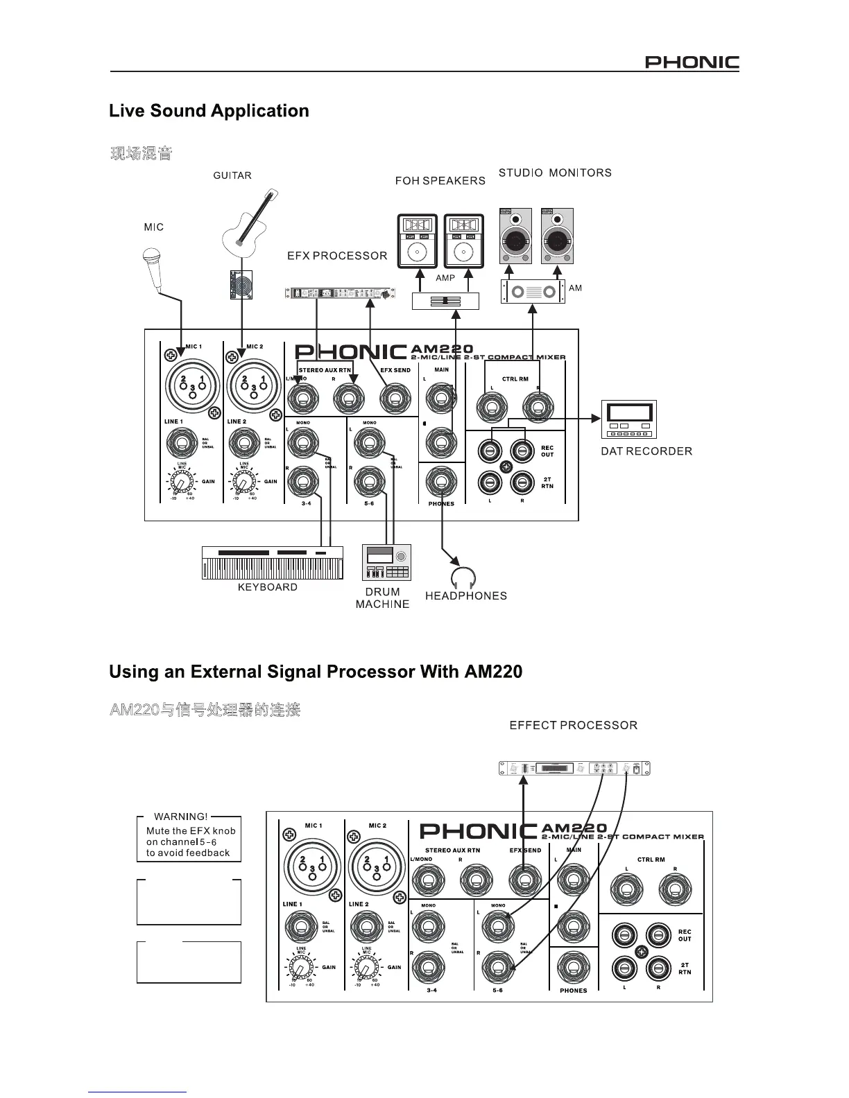Phonic AM220 - Live Sound Application; Using an External Signal Processor With AM220