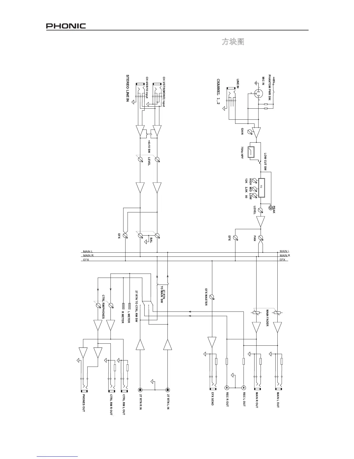 Phonic AM240 - Block Diagram; Diagrama de Bloque