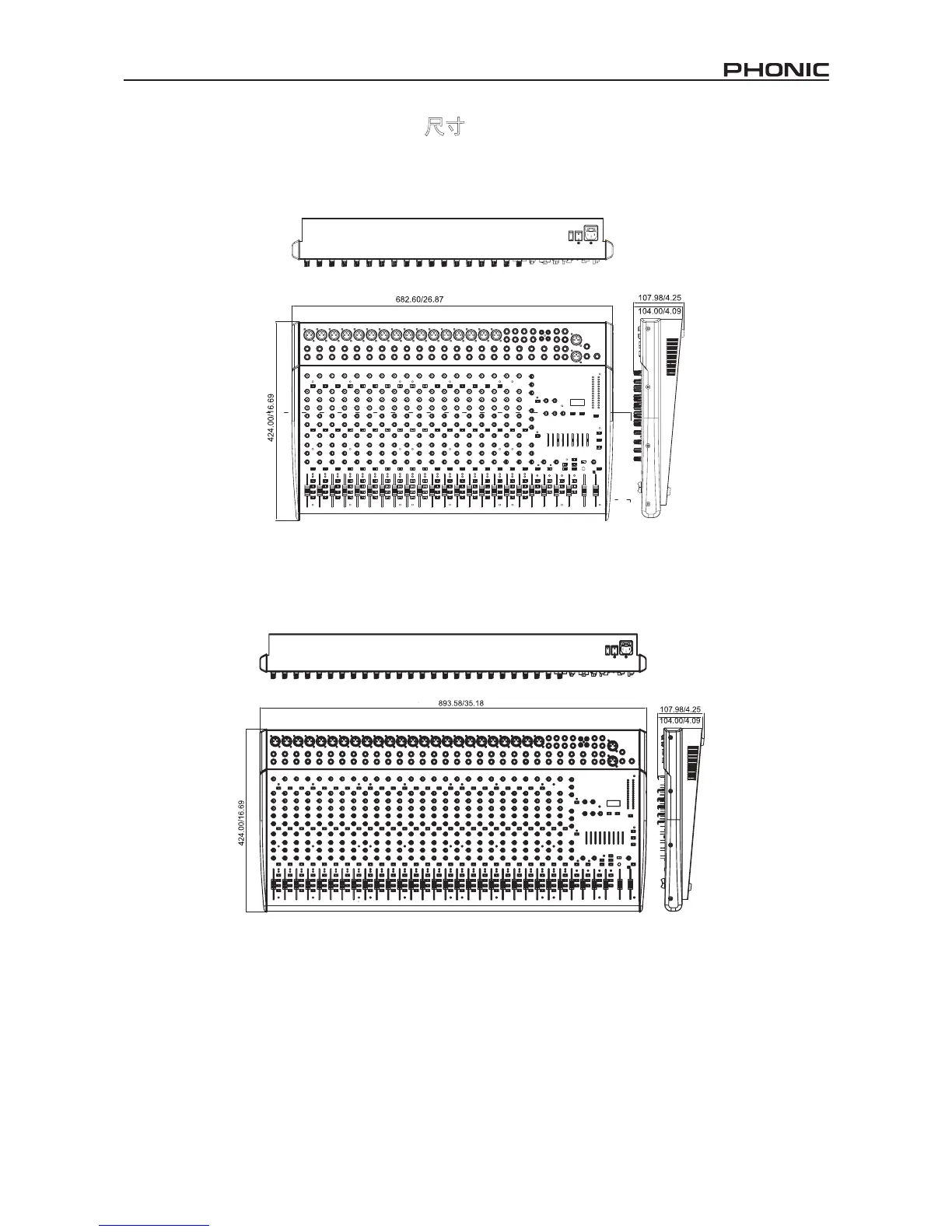 Phonic AM3242FX - Dimensions; 尺寸