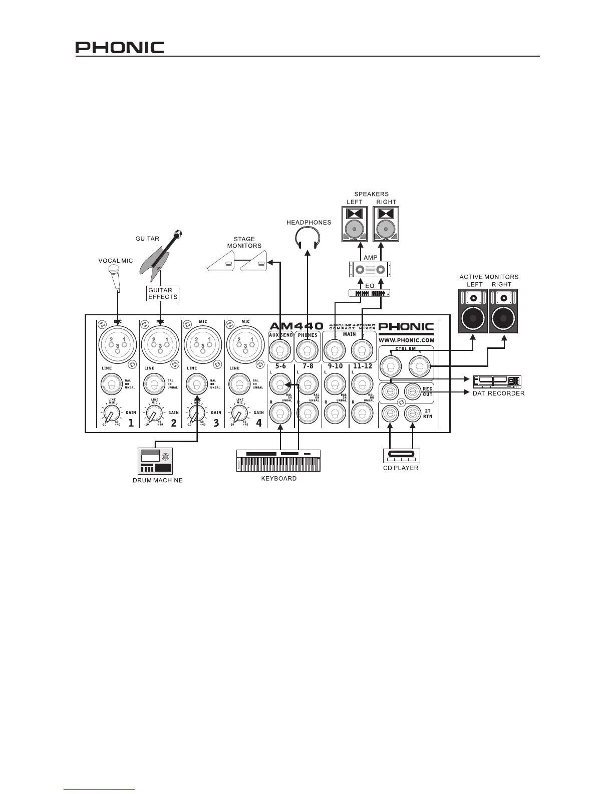 There are potentially hundreds of ways to connect instruments and devices to the AM Mixers. It is advisable that you