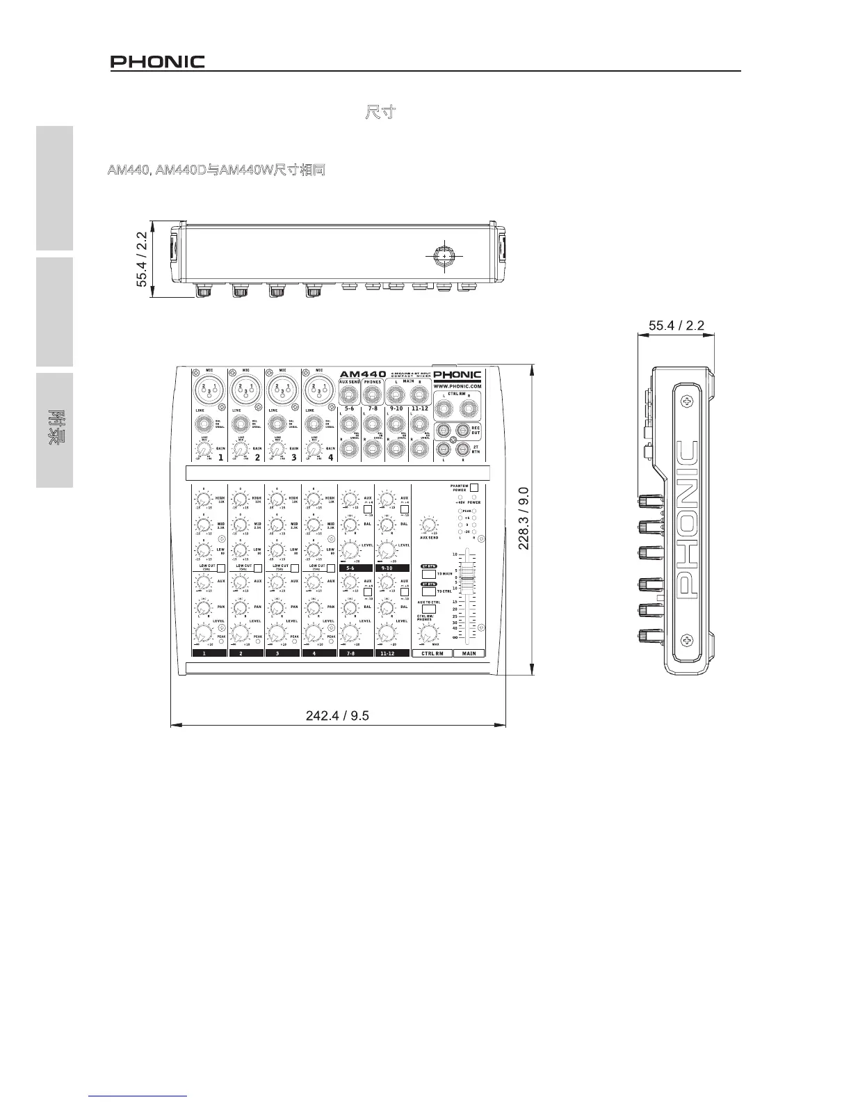 The AM440, AM440D and AM440W all share the same dimensions.