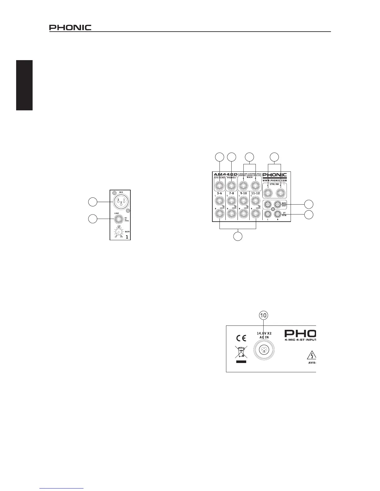 NB. When these inputs are used with condenser microphones, the