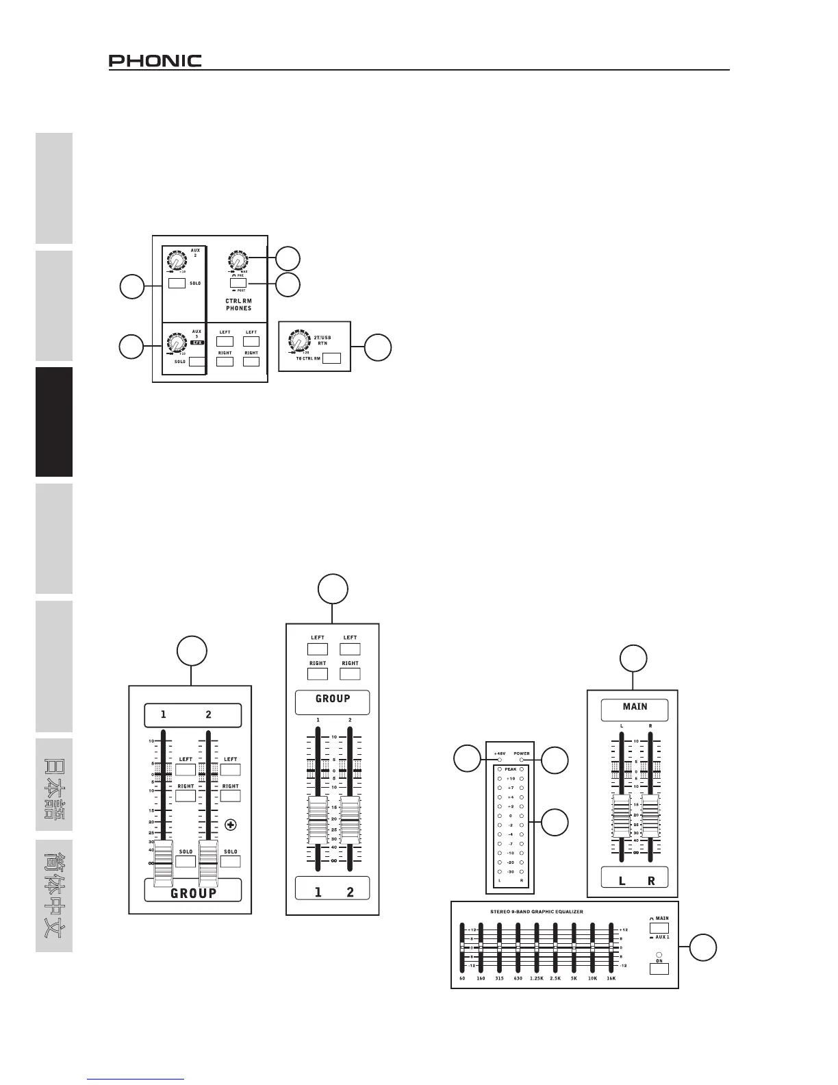 Estos dos faders son el control final para el Grupo 1 y 2 de alimen-