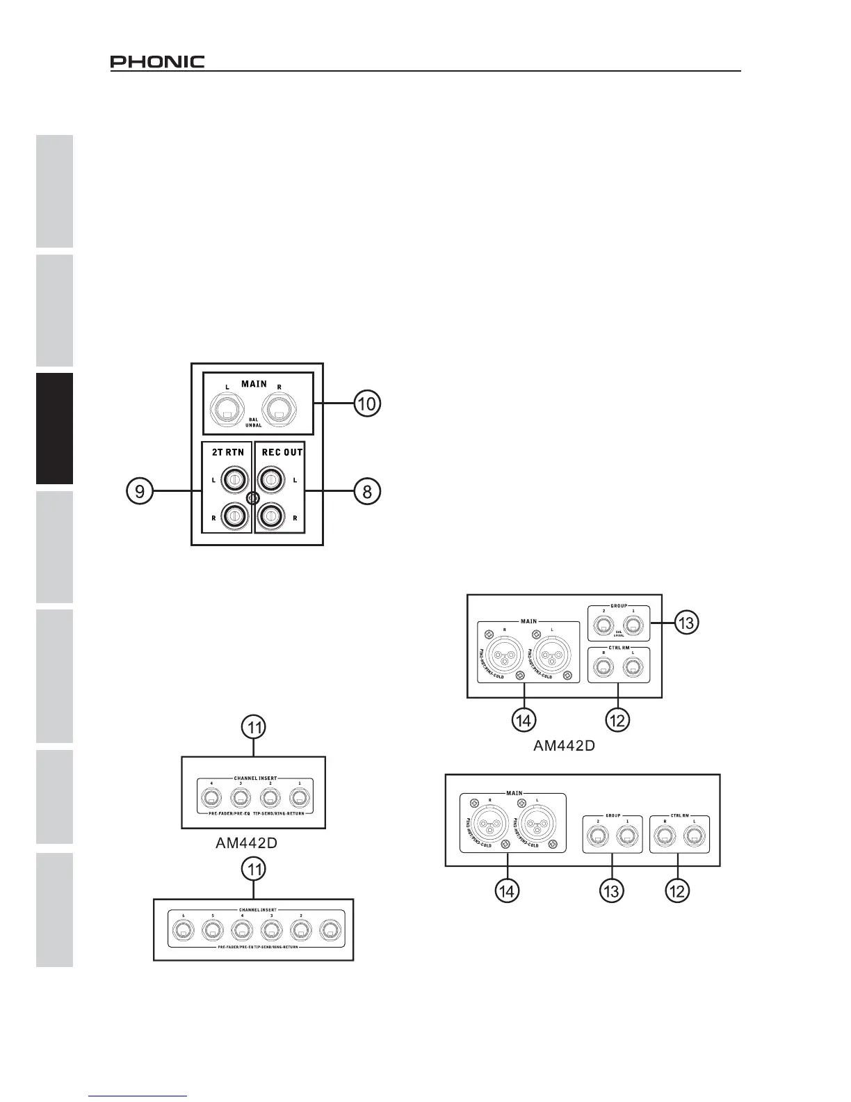 ecualizadores, a canales de entrada mono 1 a 4 en AM 442D