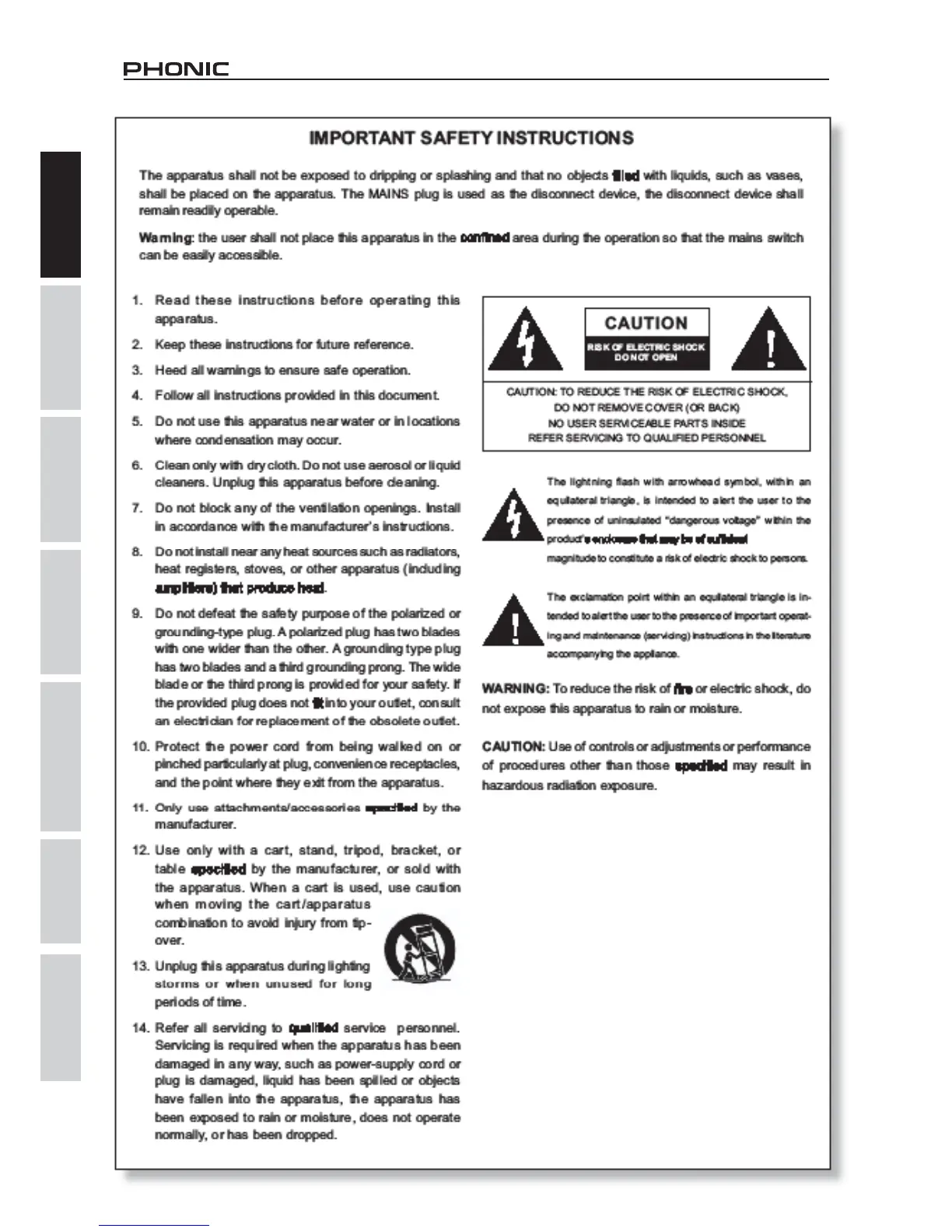 Phonic AM55 - IMPORTANT SAFETY INSTRUCTIONS; Safety Guidelines