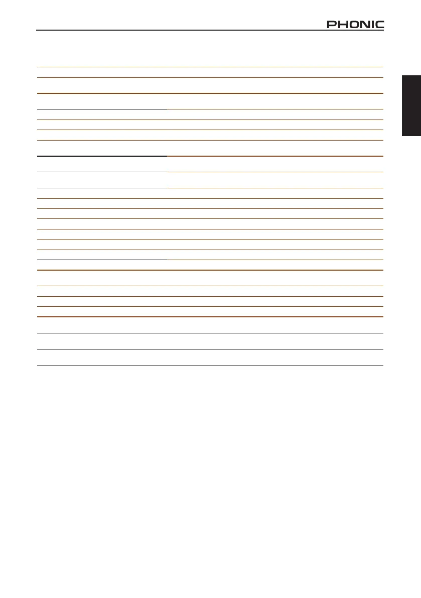 (20Hz to 20KHz; measured at main output, Channels 1-4 unit gain; EQ at; all channels on main mix;