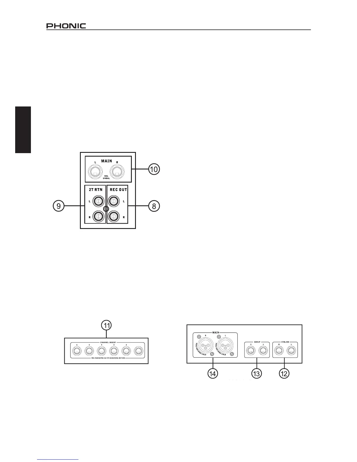 pre-EQ) y recibir señales a y desde un procesador externo.