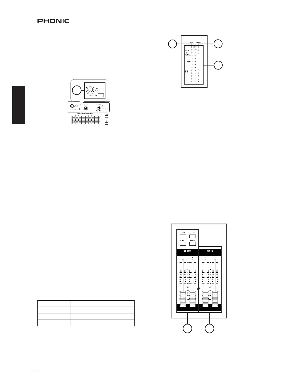 las salidas de Grupo 1 y 2. Estos faders pueden ser