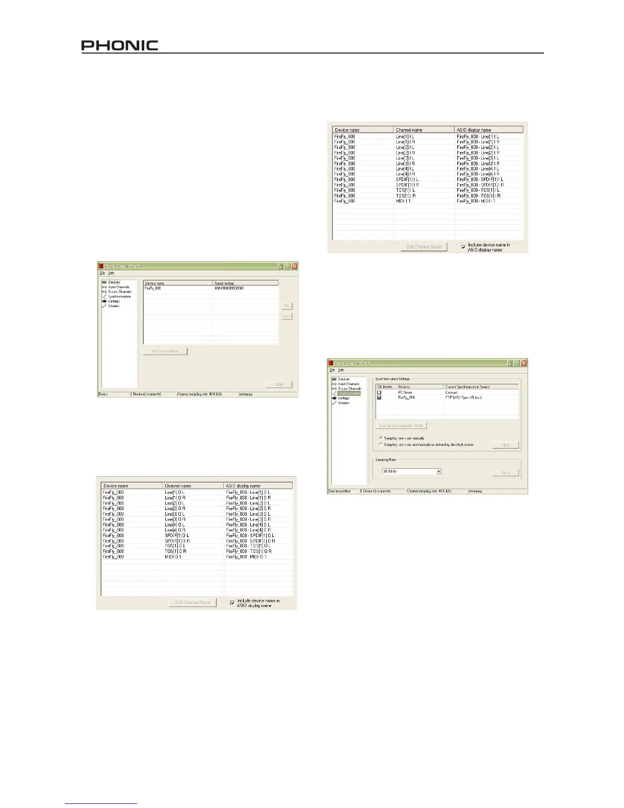 the name of the Phonic FireWire Devices connected