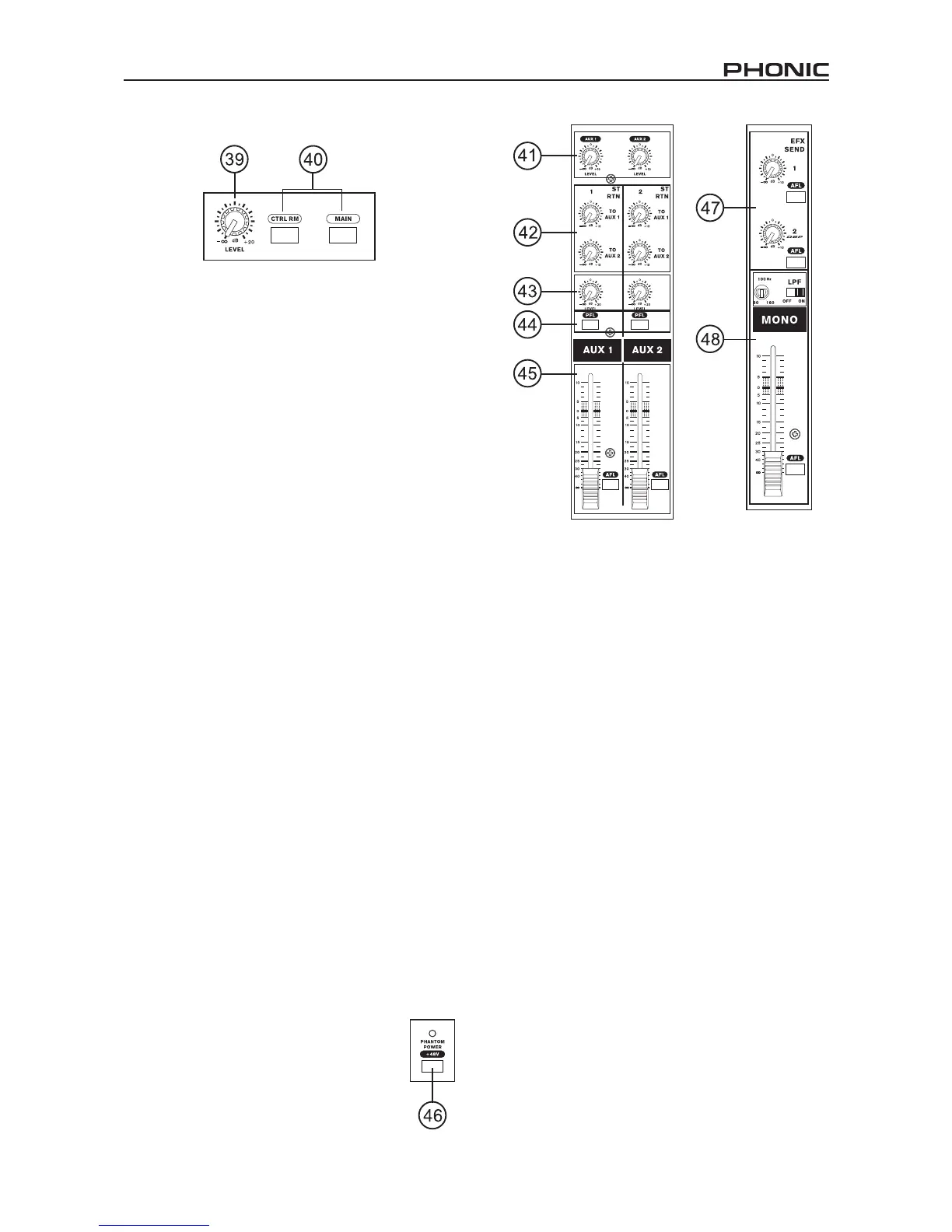 42. Controles Retorno Estéreo a AUX 1 y 2