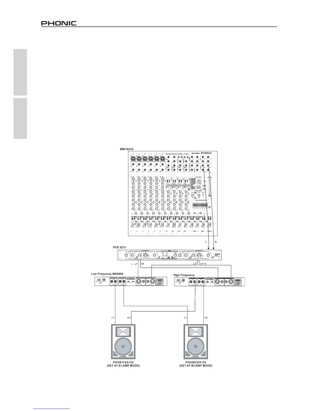 illustrated when you are using an active crossover (eg. PCR2213) and two full range speakers that feature bi-amp operation modes (eg.