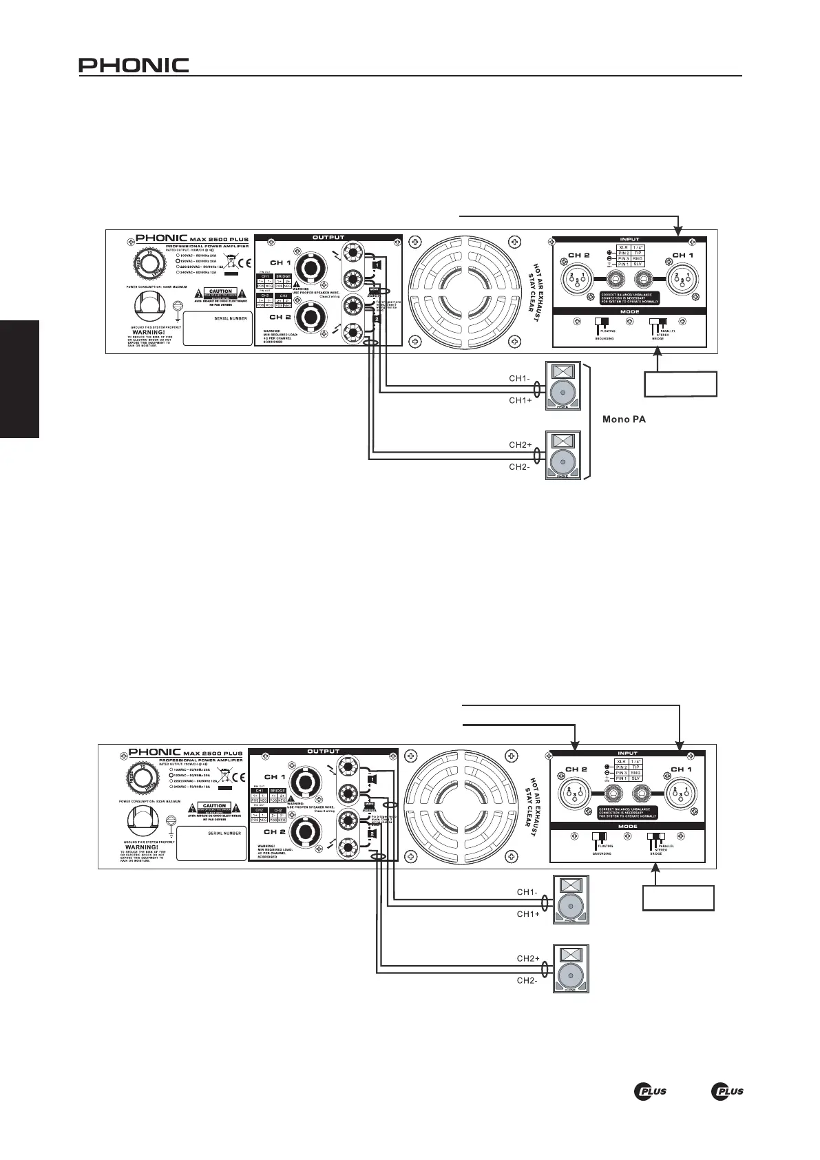 C) Este amplificador de potencia puede ser utilizado también para bi-amplificación. Un canal para conducir