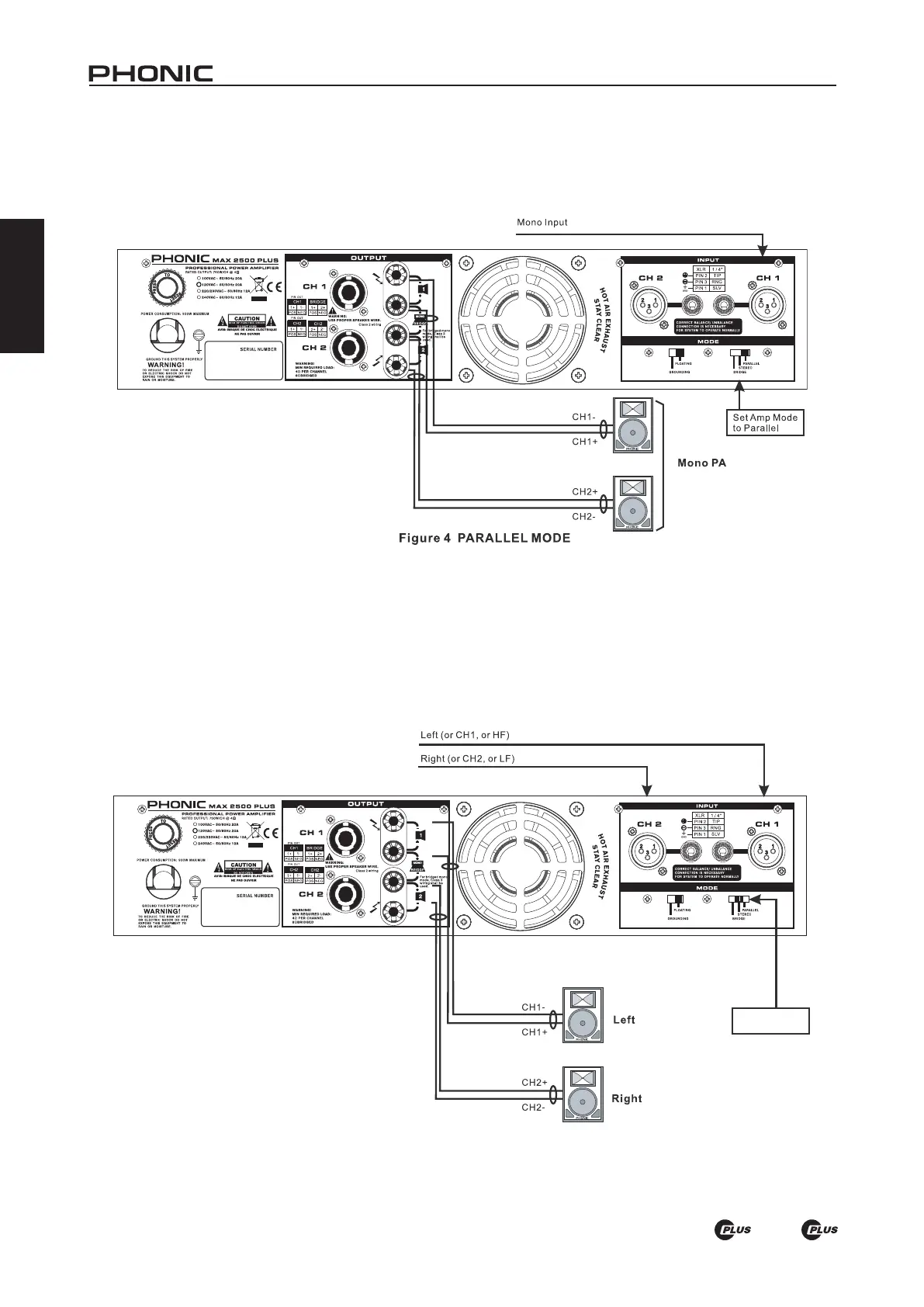 When set to PARALLEL mode, the input signal of Channel 2 parallels the input signal of Channel 1, so only one input jack