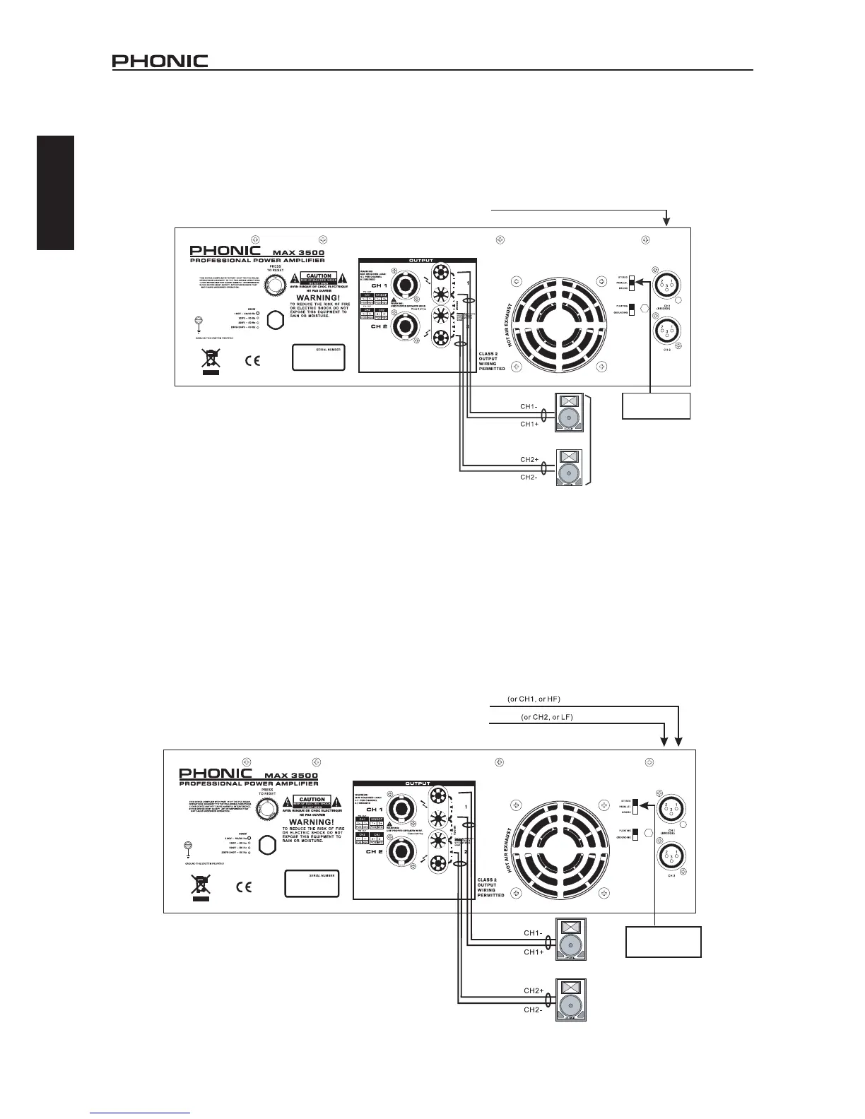C) El amplicador de potencia puede ser usado para bi.-amplicación. Un canal es usado para llevar la baja
