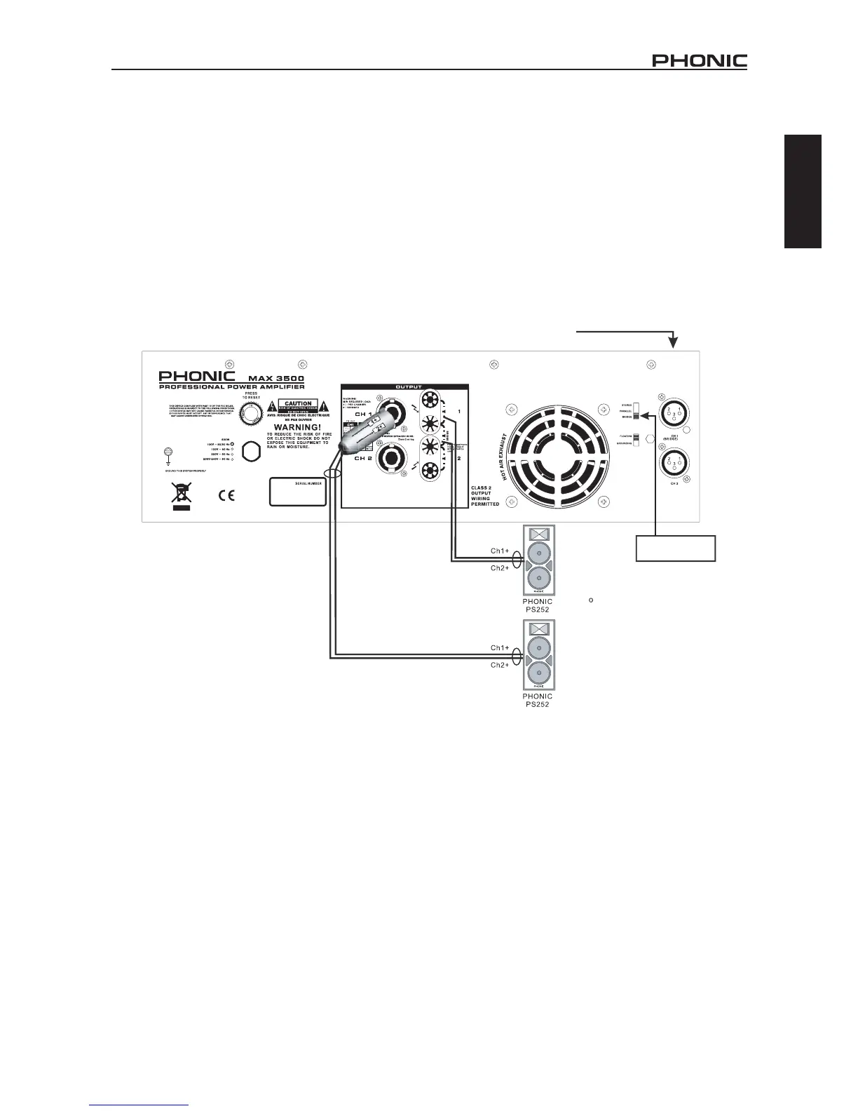 1+ como ¨+¨ y el canal2+ como ¨-¨. No usar el modo de salida del canal 2 de speakon cuando esta en este