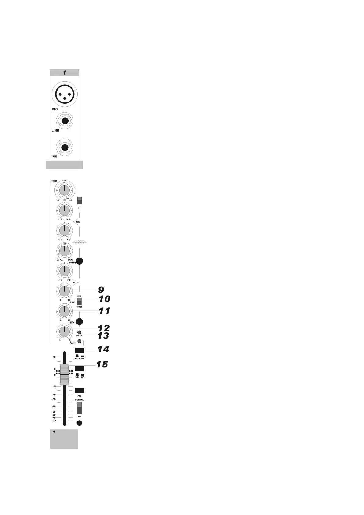 A long-throw 60mm linear fader determines the proportion of the channel in