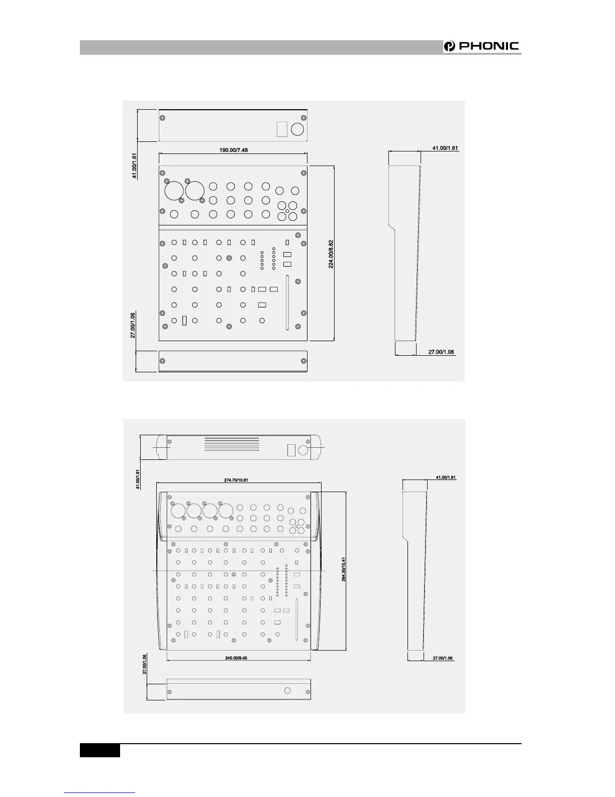 Phonic MM1002 - Technical Dimensions; MM1002 Physical Dimensions; MM1202 Physical Dimensions