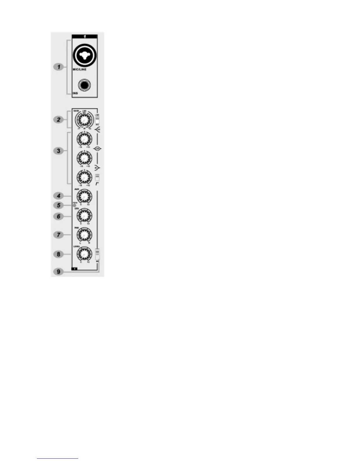 ゲイン・ポットを調整し、チャンネルの入力信号レベルを設定します。ゲ