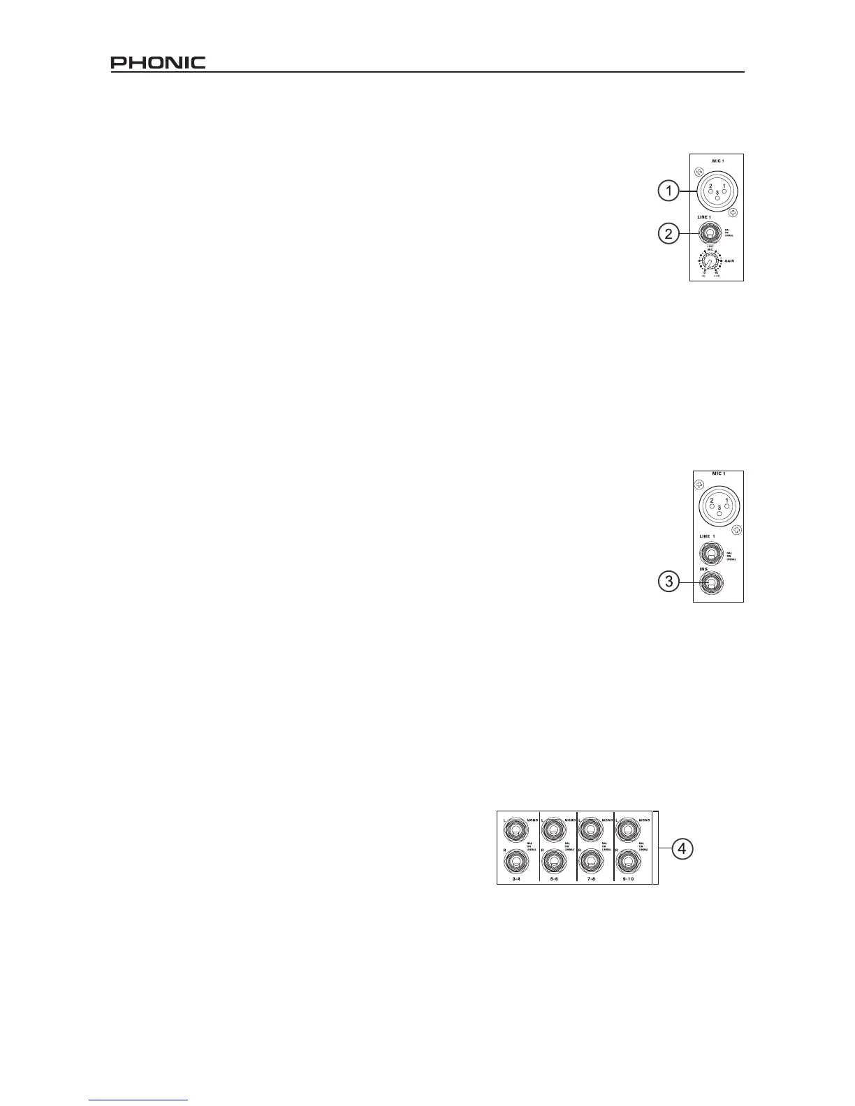 NB. When these inputs are used with condenser microphones, the Phantom