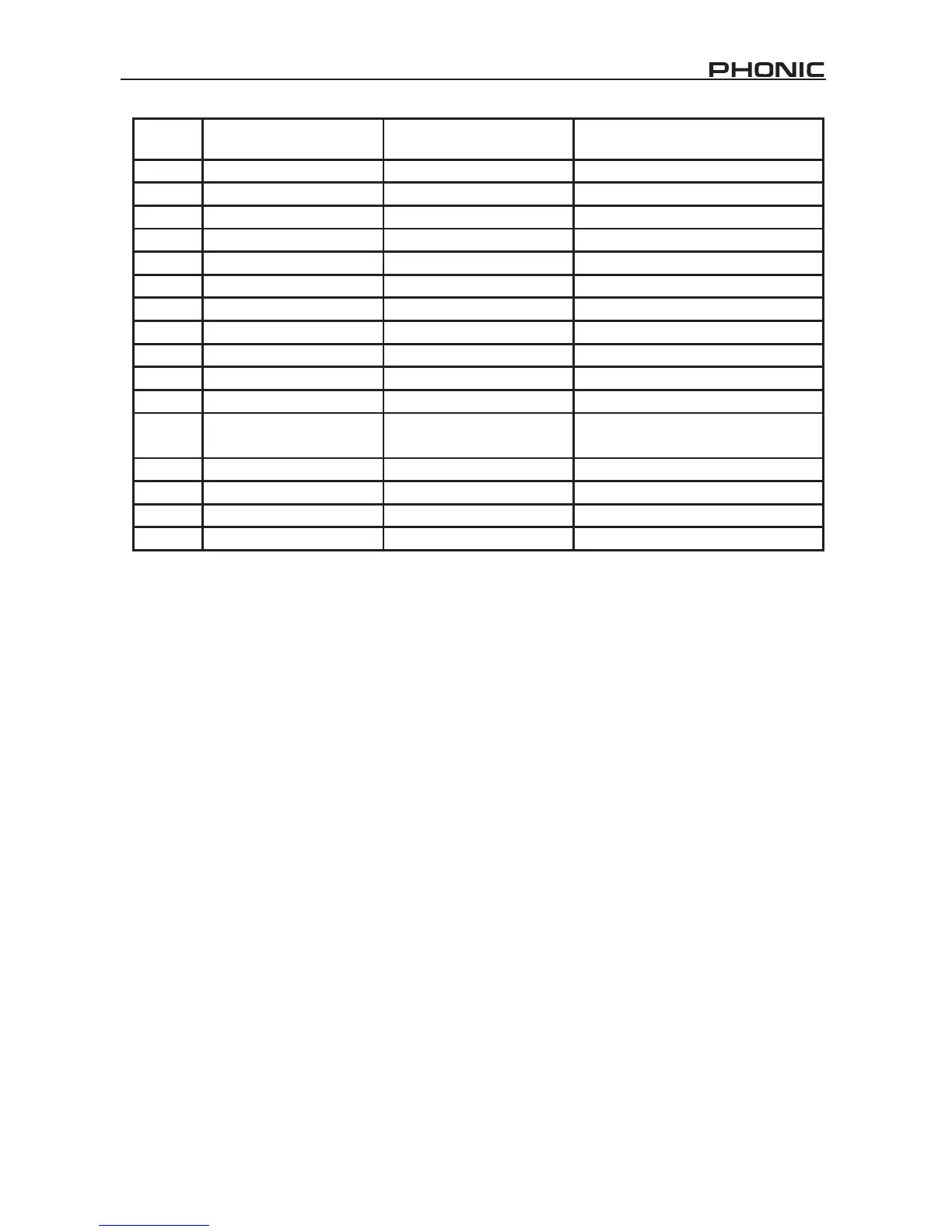 15 Phaser + Rev Modulation Frequency 0.05 – 4.00 Hz