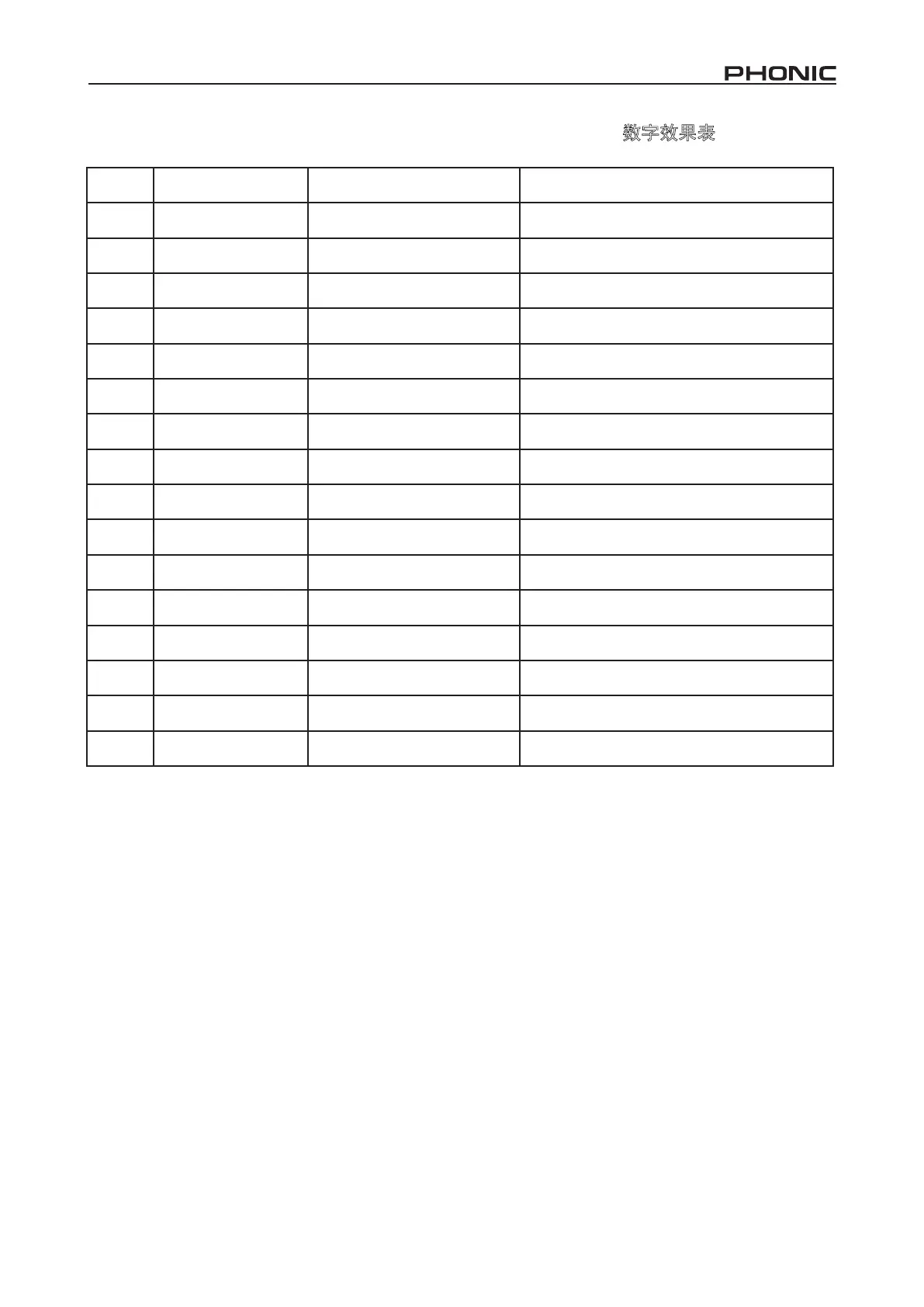 Phonic mu1202x - Digital Effect Table; Tabla de Efecto Digital; 数字效果表
