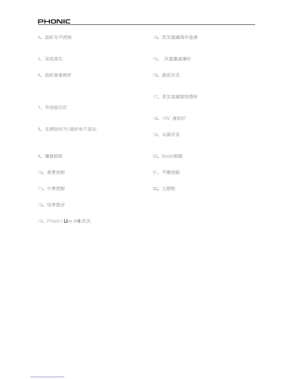 将一声道的信号与另一个声道相混音。音衰控制滑杆