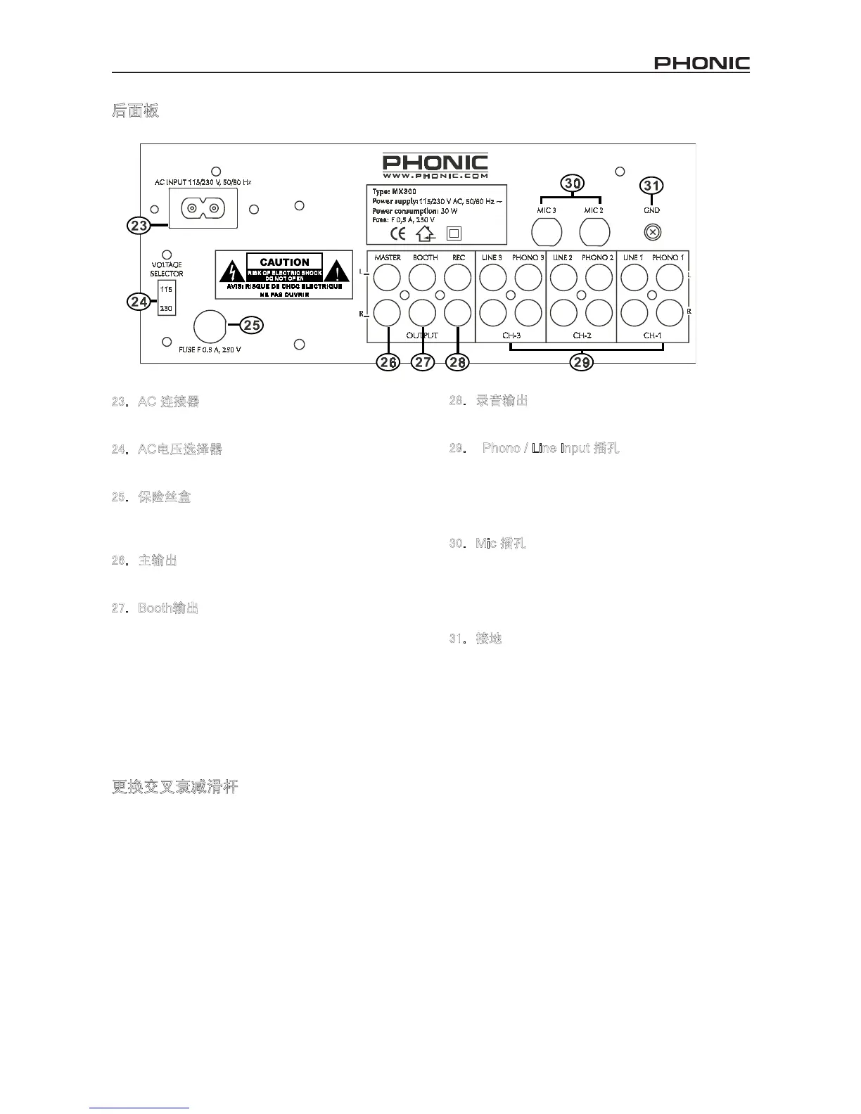 29.Phono / Line Input 插孔