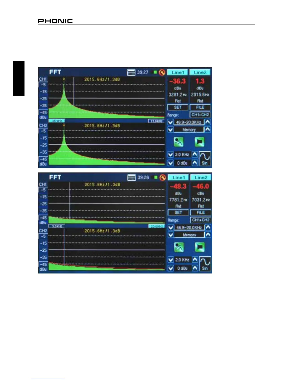 7. FFT results are displayed over two pages, meaning you can actually ‘scroll’ to the left or right to view