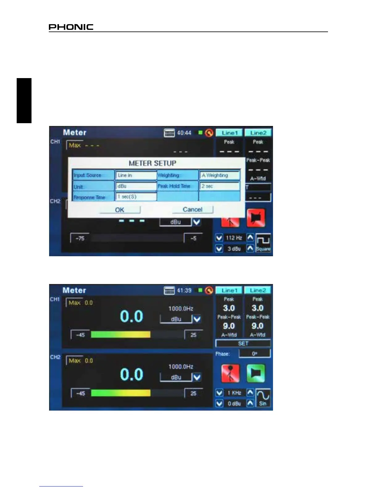 2. You may select a response time, weighting, or peak hold time (gure 48). Push “OK” to close the