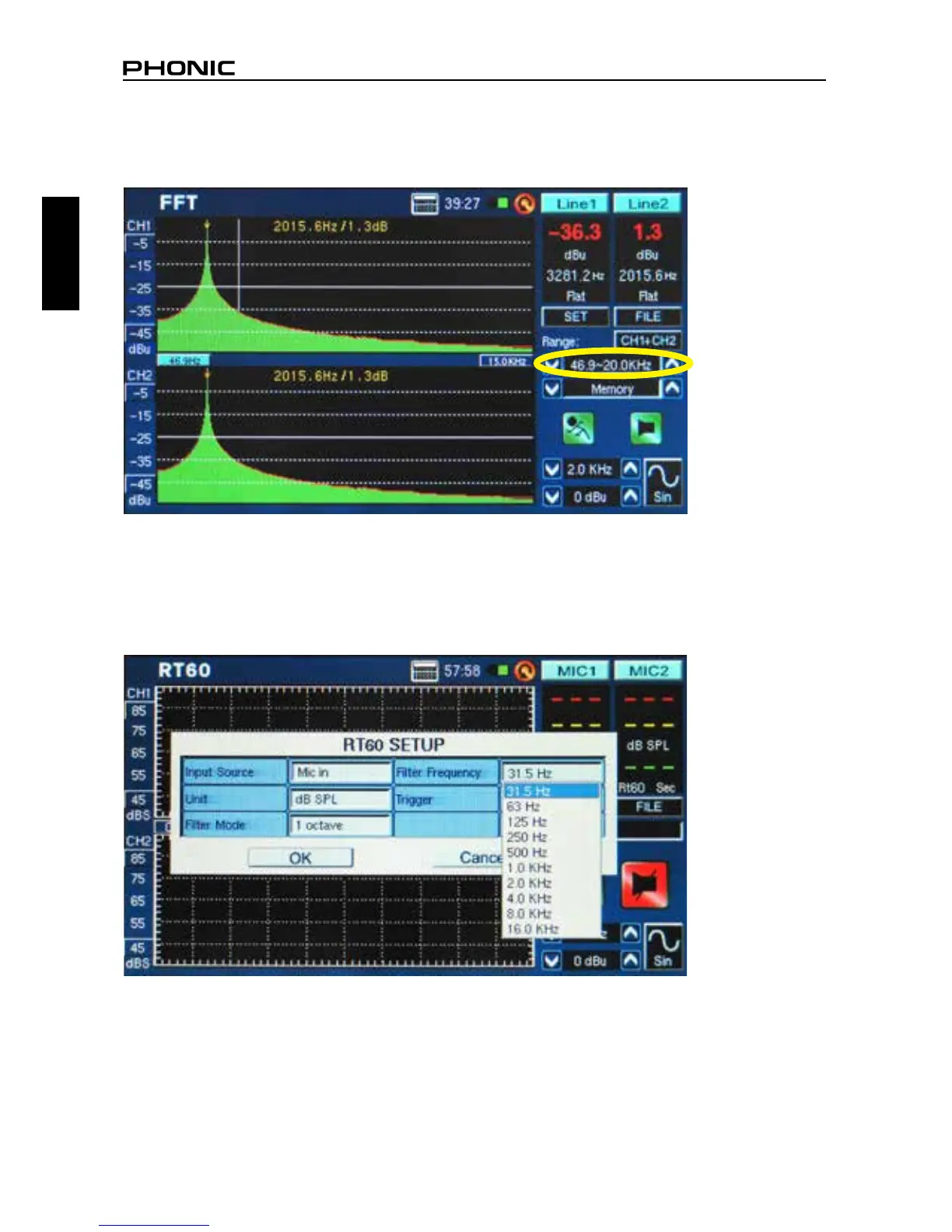 11. Filter Mode/Frequency (gure 65)– On the RT60 function, this setting allows users to select one of
