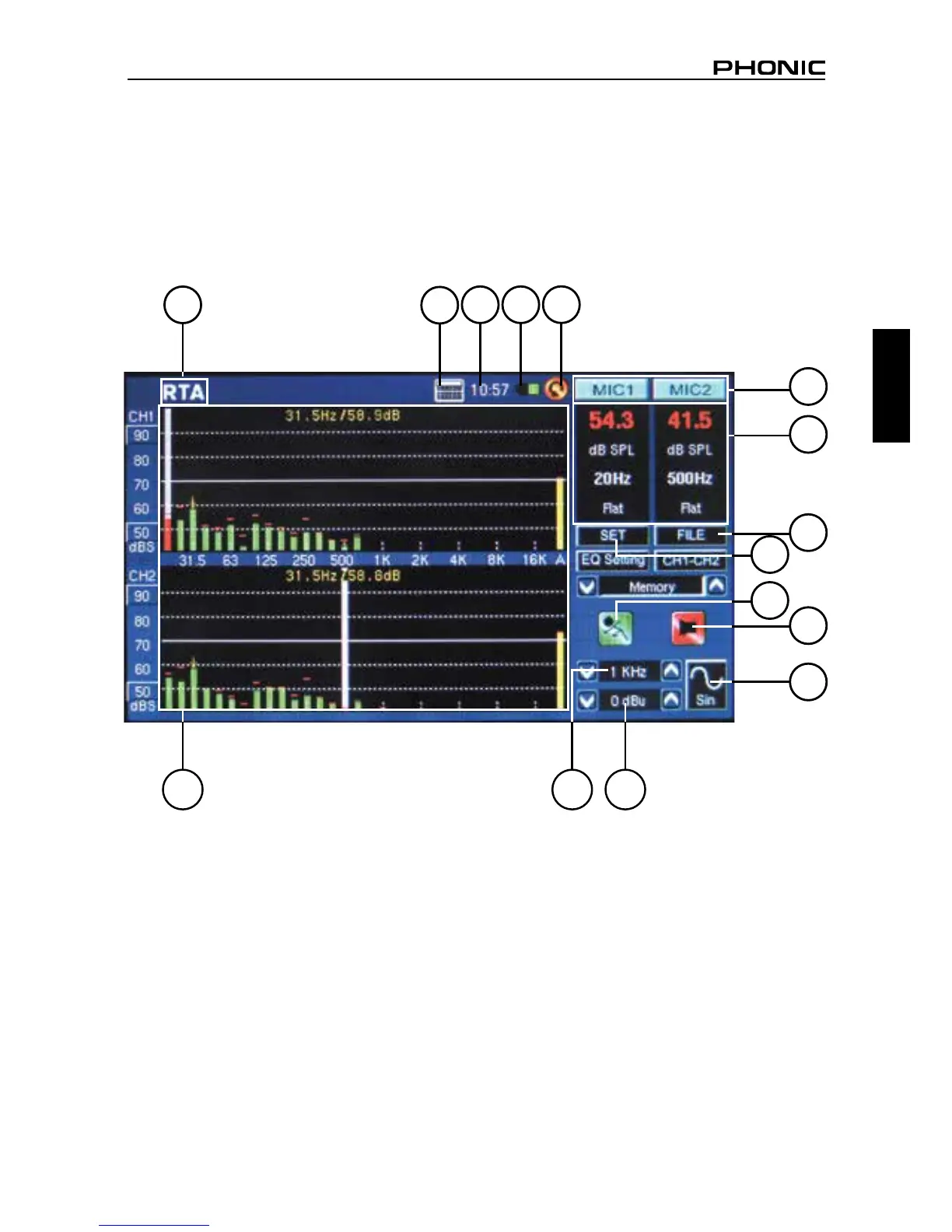 Aquí todas las 9 funciones de análisis de audio pueden ser accedidas fácilmente, así como la función