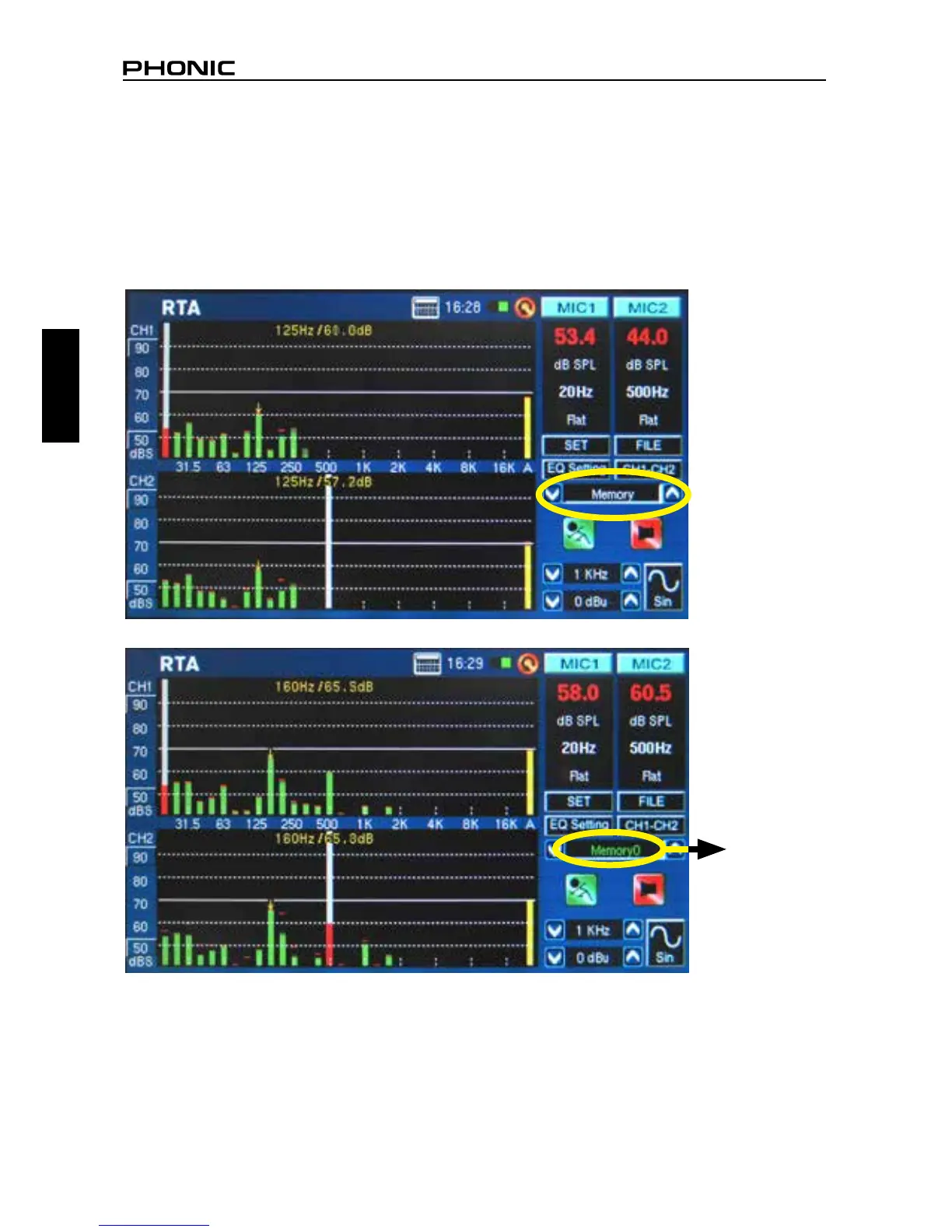 memoria, haga click en el nombre de la ranura de memoria para guardar. El texto verde indica que