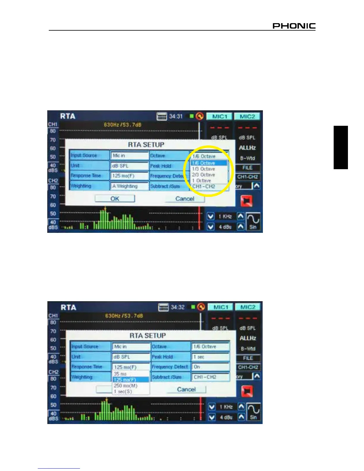 (gura 15). Cada banda de frecuencia se representa grácamente como barra vertical en el RTA, cuya