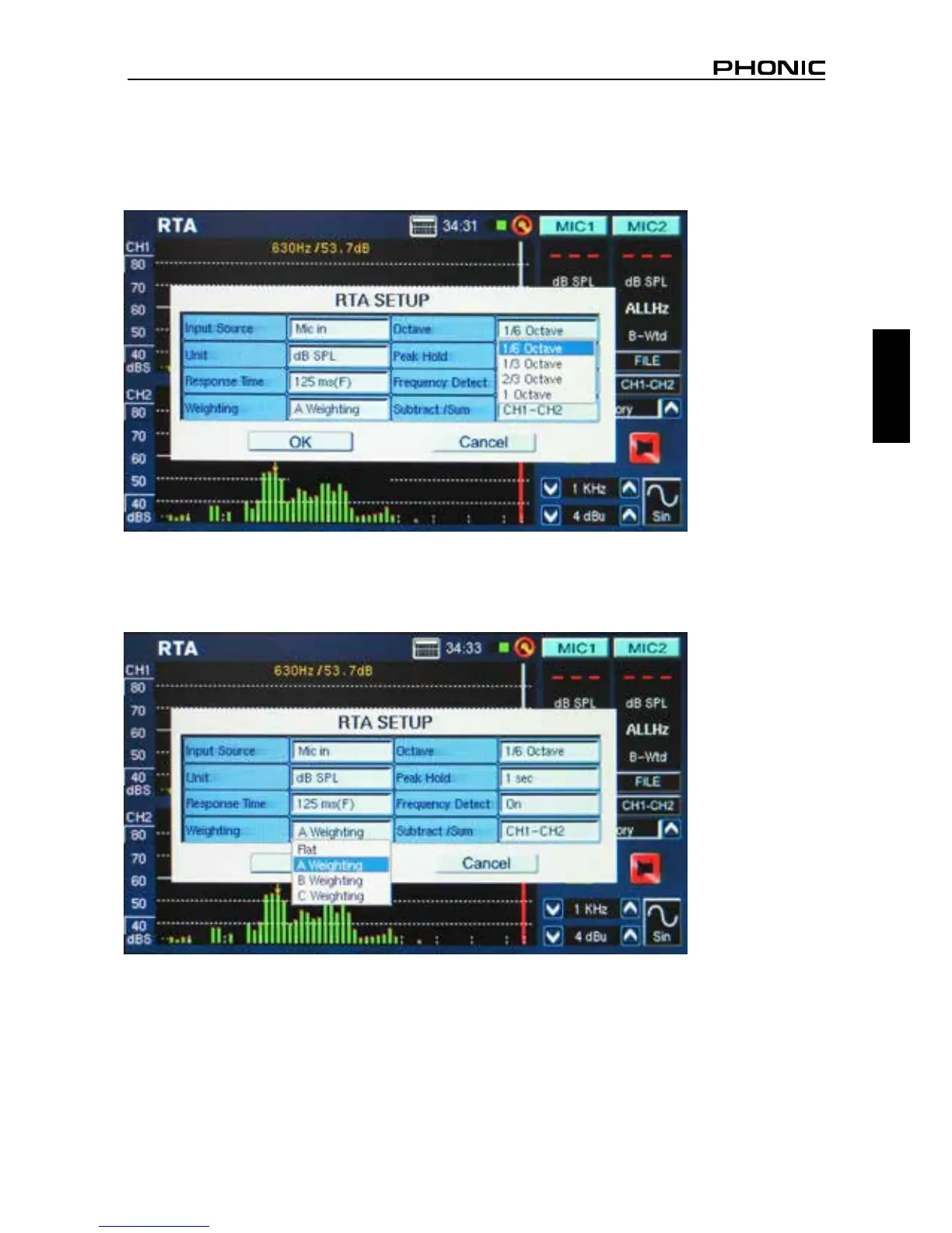 pueden selecciona de resolución 1 octava (para un total de 10 bandas en RTA), resolución 2/3 octava