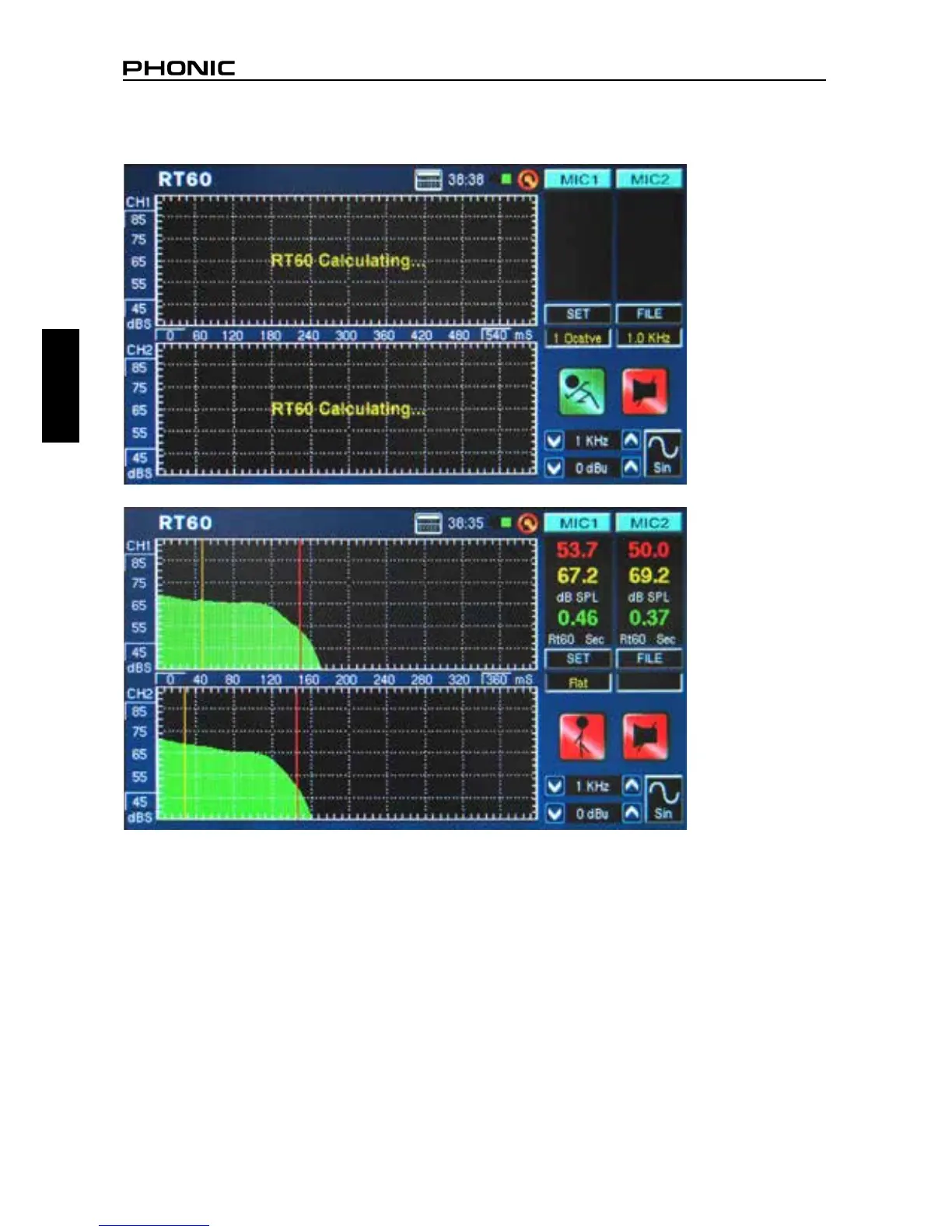 7. Después de que se tome la medición, el gráco de la medición RT60 aparecerá en pantalla (gura
