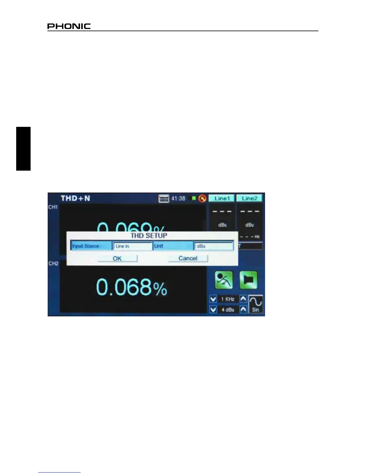 1. Ingrese a la función de THD+N y elija SET para entrar al menú de los ajustes. Aquí los usuarios