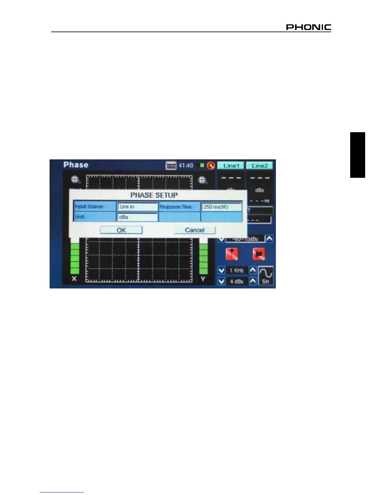 unidad a la unidad que su señal de entrada será. Seleccione “OK” para regresar a medidor de fase.