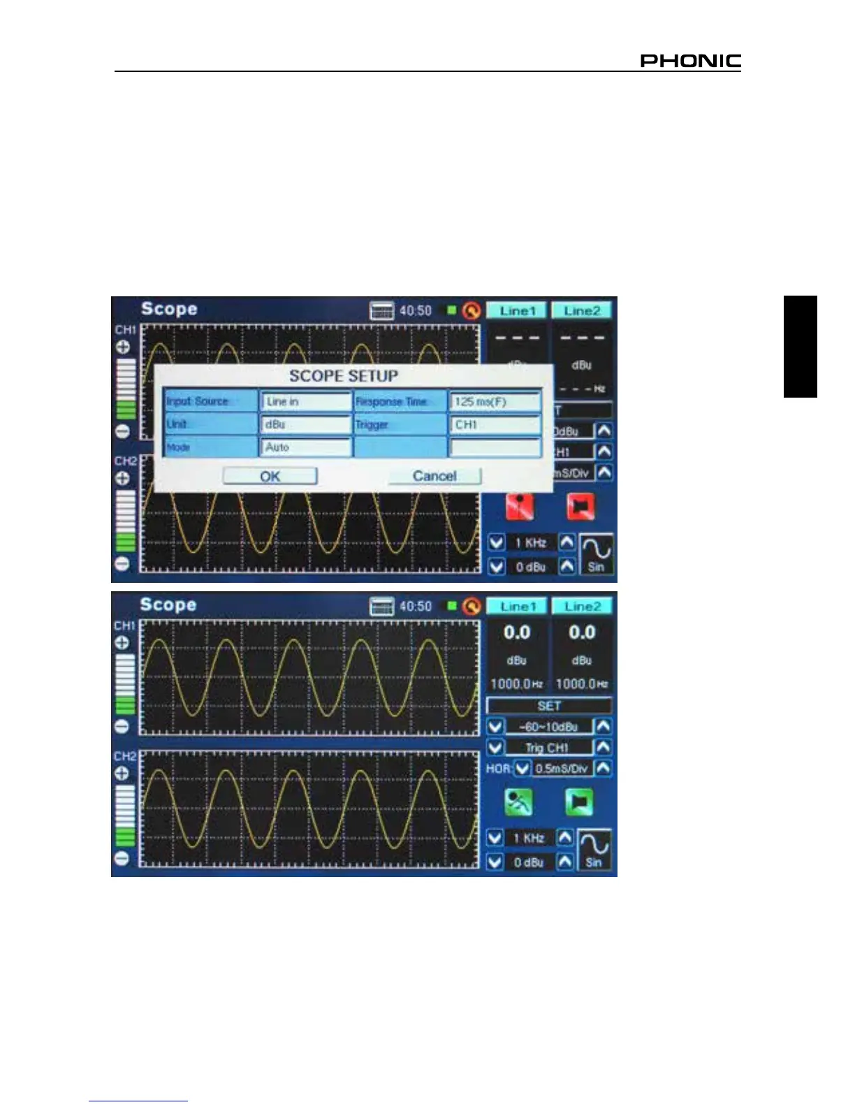 1. Ingrese al menú SET dentro de la función Scope (gura 52). Aquí los usuarios pueden ajustar la