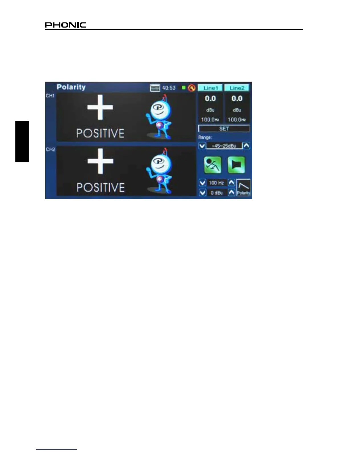 7. Un gran “+” aparece en la pantalla signica que la señal está en fase y el cableado es correcto
